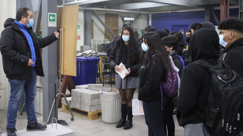 40 alumnos y alumnas del colegio Domingo Eyzaguirre pudieron conocer sobre las áreas de estudio, el campo laboral, la investigación y más en torno a las carreras de Ingeniería Civil en Obras Civiles e Ingeniería en Construcción.