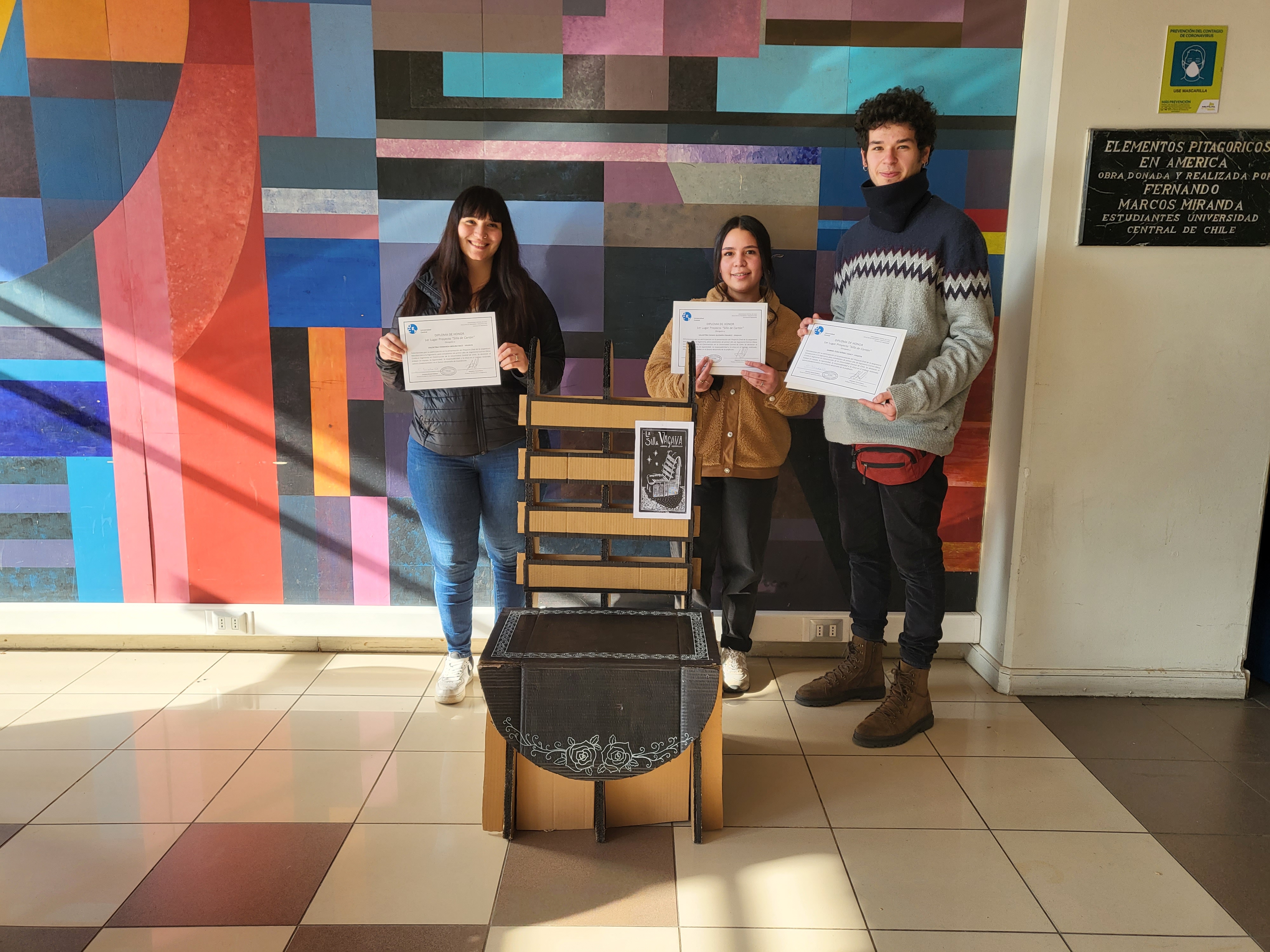 La idea ganadora es obra de las estudiantes Valentina Guzmán Vivanco de Ingeniería Civil en Obras Civiles, Valentina Molina Báez de Ingeniería en Construcción y de Gabriel Gómez Sancy de Ingeniería en Construcción, que junto con el resto de las muestras fueron presentadas en el Hall Central del edificio VKI.