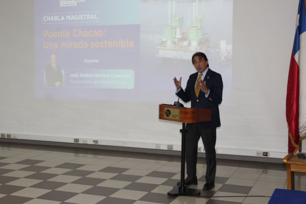 El subsecretario de Obras Públicas, José Andrés Herrera, y el director nacional de Vialidad, Horacio Pfeiffer, realizaron una presentación sobre el mega proyecto del “Puente de Chacao: una mirada sostenible” que espera ser inaugurado a fines de 2028.