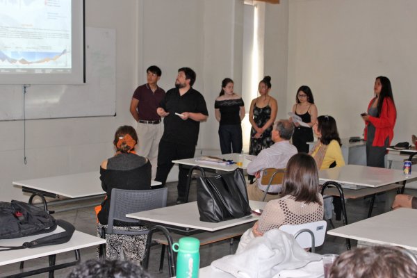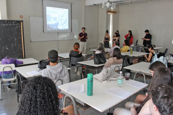 En la Sala 214 del edificio Vicente Kovacevic I se llevó a cabo la actividad en la que estudiantes de la carrera de Arquitectura del Paisaje presentaron proyectos sobre la restauración ecológica del Relleno Sanitario Lomas Los Colorados, en la comuna de Til Til.