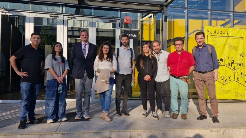 Encabezados pot el Decano Uwe Rohwedder, y en compañía del Director de Desarrollo e Innovación de la UCEN, Felipe Jara, el grupo se completaba con la Secretaria de Facultad, Paulina González, los docentes Jon Arteta y Sergio Cárdenas, además de 3 estudiantes de Arquitectura.