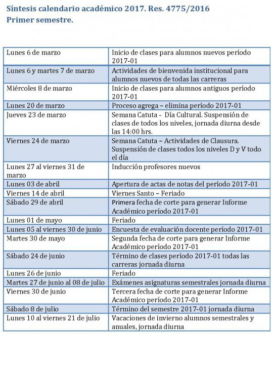Los nuevos alumnos de la Facultad de Ciencias Sociales de la UCEN iniciarán sus clases 2017 el lunes 6 de marzo. Los estudiantes antiguos comenzarán el miércoles 8 de marzo.