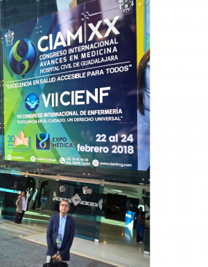 En misma ciudad de Guadalajara, del 22 al 24 de febrero, el profesor dictó dos conferencias magistrales en el XX Congreso Internacional Avances en Medicina del Hospital Civil de Guadalajara, evento mundial de relevancia en la que participaron exponentes de las disciplinas de la medicina, enfermería y psicología entre otras. En la oportunidad el docente también fue entrevistado en la publicación oficial del periódico del evento (Nº 5, año 20, 24 febrero del 2018).