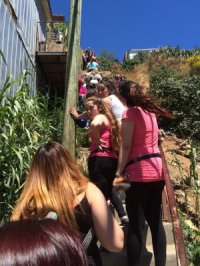 Estudiantes de primer año de la carrera de Trabajo Social, de la FACSO, junto a la directora de la Escuela, Daisy Margarit, el secretario de estudios, Hugo Covarrubias y la secretaria, Sra. Aída Figueroa, visitaron el Congreso en Valparaíso y fueron parte de una intervención social comunitaria en la zona del incendio en el Cerro las Cañas junto al Centro comunitario de dicho lugar.