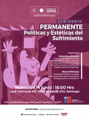 El miércoles 14 de junio se realizará la tercera sesión del seminario de investigación "Políticas y Estéticas del sufrimiento: Una crítica al campo psi" que encabeza la académica de FACSO, Claudia Calquín, en el marco del proyecto Fondecyt N° 11160371.