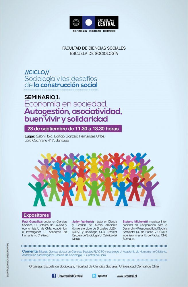 Entre septiembre y noviembre se están llevando a cabo cuatro seminarios que formarán parte del ciclo "Sociología y los desafíos de la construcción social", iniciativa de la Escuela de Sociología de la Facultad de Ciencias Sociales de la Universidad Central.