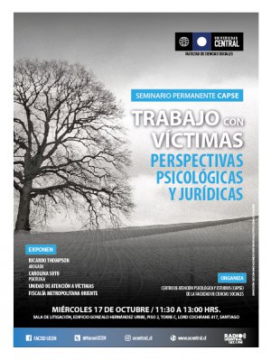 Con la participación de Ricardo Thompson (abogado) y Carolina Soto (psicóloga) de la Unidad de Atención a Víctimas de la Fiscalía Metropolitana Oriente, el 17 de octubre se realizará el seminario "Trabajo con víctimas: perspectivas psicológicas y jurídicas".