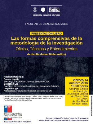 Se trata de "Las formas comprensivas de la metodología de la investigación. Oficios, Técnicas y Entendimientos" que tiene como editor al sociólogo y académico de FACSO/UCEN, Nicolás Gómez Nuñez.