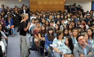 Las nuevas alumnas y los nuevos alumnos presentes también tuvieron la oportunidad de conocer a parte del equipo que compone la Facultad con quienes comenzarán a relacionarse a diario: directores de carreras; secretarios de estudios; coordinadores de diversas áreas y el personal administrativo, quienes se presentaron uno a uno en el escenario.