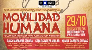 En el marco de cuatro foros que realizará la Escuela de Trabajo Social de FACSO durante el segundo semestre del año académico 2014, el 29 de octubre se llevó a cabo uno sobre "Movilidad Humana".
