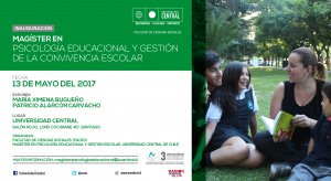 El sábado 13 de mayo se realizará en la UCEN la inauguración de la segunda versión del Magíster en Psicología Educacional y Gestión de la Convivencia Escolar de la Facultad de Ciencias Sociales de la Universidad Central.