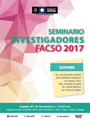 La Facultad de Ciencias Sociales realizará el Seminario "Investigadores FACSO 2017" con el fin de compartir con la comunidad académica los contenidos de los estudios que están llevando a cabo.