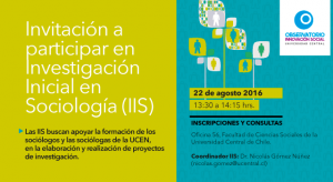 La Escuela de Sociología de la Facultad de Ciencias Sociales ha invitado a estudiantes a participar en proyectos de Investigación Inicial en Sociología (IIS). Las IIS buscan apoyar la formación de los sociólogos y las sociólogas de la UCEN, en la elaboración y realización de proyectos de investigación. Para lo cual, se realizarán dos reuniones cada mes, donde se promoverá el análisis de las propuestas de investigación de los estudiantes, abordando su ámbito teórico y/o metodológico.
