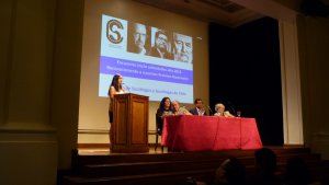 La directora del Colegio de Sociólogos, Mónica Vargas, en su intervención hizo referencia al crecimiento de los sociólogos en Chile, que alcanzan un número superior a los 7 mil profesionales, además de cerca de 3 mil sociólogos en formación.