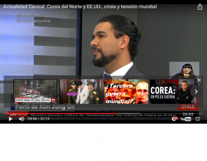 Su participación se llevó a cabo durante el programa Actualidad Central que semanalmente emite el canal de TV CNN. En esta oportunidad, que fue emitida el 23 de abril, el tema que se abordó fue: “Corea del Norte y EE.UU., crisis y tensión mundial”.