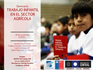 La Facultad de Ciencias Sociales (FACSO) de la Universidad Central, la Seremi del Trabajo y Previsión Social, y la Fundación Cenda realizarán en la Universidad Central el Seminario "Trabajo infantil en el sector agrícola".