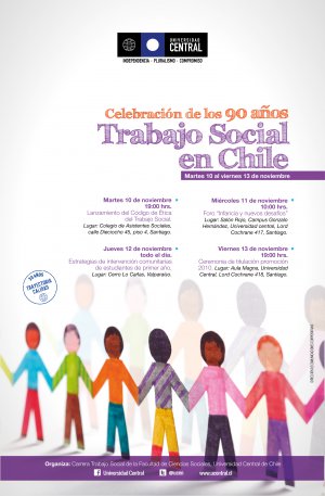 La Escuela de Trabajo Social de la Facultad de Ciencias Sociales de la Universidad Central realizará entre el 10 y el 13 de noviembre variadas actividades con alumnos, egresados y profesionales de otras entidades, con el fin de celebrar los 90 años de la creación de la primera Escuela de Trabajo Social en Chile y Latinoamérica.