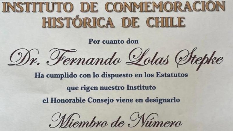 The researcher was named Member of Number in chair ten to replace the historian Luis Lira Montt./ El investigador fue nombrado Miembro de Número en el sillón diez en reemplazo del historiador Luis Lira Montt.