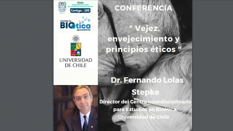 El pasado 20 de octubre, se llevó a cabo la conferencia "Vejez, Envejecimiento y Principios Éticos", realizada por el vicepresidente regional de la WFMH Presidente América Latina 2021-2023 y miembro del Instituto de Investigación y Postgrado de la Facsalud. Dr. Fernando Lolas Stepke , organizado por la Comisión de Bioética Aguascaliente, México.