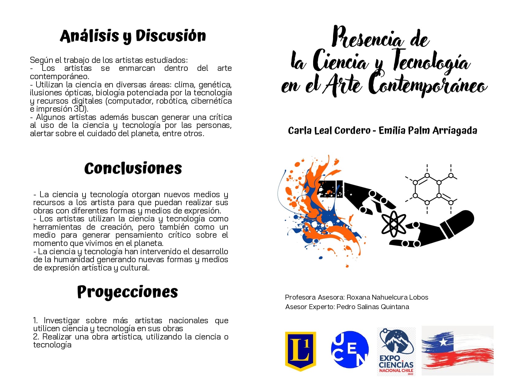 Durante todo este periodo se han cumplido hitos importantes del trabajo conjunto. Particularmente, un reciente segundo lugar en la Feria Científica Juvenil, la más importante de Chile, y la participación de su trabajo para la Expociencias 2022 que se realizó en nuestra universidad el pasado 26, 27 y 28 de octubre con el proyecto "Presencia de la ciencia y tecnología en el arte contemporáneo".