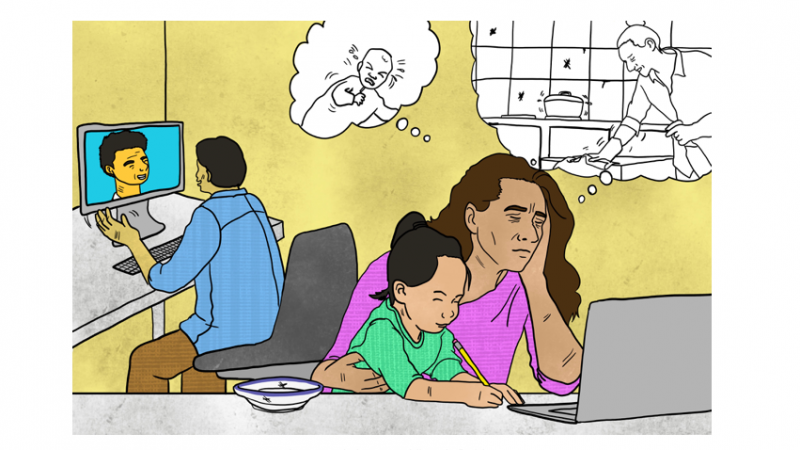 El artículo es la reflexión de dos investigadoras que nos muestran las condiciones desiguales en que mujeres viven el trabajo y los cuidados en un espacio confinado en tiempos de pandemia