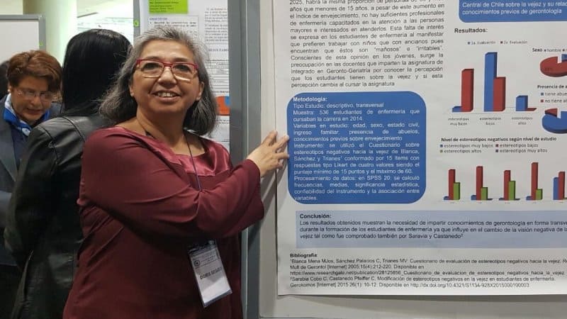 Intuitivamente me di cuenta de que el país estaba envejeciendo y que teníamos que formarnos y empezar a ver en qué condiciones envejecían las personas, interés que se acentuó cuando por un problema de salud de urgencia de la persona que cuidaba a mis hijos y que creíamos que era mucho mayor que yo, nos dimos cuenta que teníamos la misma edad y empezamos a comparar nuestras historias de vida; creo que la información obtenida me ha permitido implementar programas de educación en salud para las personas mayores para su autocuidado y tratar de formar a mis futuros pares y de entusiasmarlos a trabajar con las personas mayores complementando su formación con la participación de mayores en las clases y en proyectos, además al ser ya ahora yo una persona mayor me permite mostrar como el cumplir años no es tan “terrible” y que hay que prepararse para envejecer, el establecimiento de programas intergeneracionales que tienen evidencia de ser el mejor medio para disminuir el edadismo hacia las personas mayores y que contribuyen además a disminuir el impacto de la soledad no deseada. El edadismo, la soledad y las relaciones intergeneracionales es a lo que dedico mi tiempo.