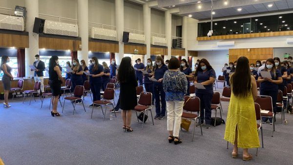 Luego se dio entregó los titulos a las y los estudiantes por la directora de la Escuela de Salud y la directora de la carrera de Enfermería Ana Luisa Fierro.