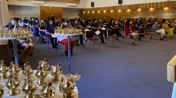 La ceremonia contó con las palabras de la directora de la Escuela de Salud, Mg. María Vanessa Hormazábal Bustamante, quien aconsejo a las y los estudiantes a vivir su vida con integridad, como personas honestas y compasiva como profesionales preocupados por la excelencia de sus cuidados y la dignidad humana, de manera de contribuir a las salud integral de nuestra sociedad.