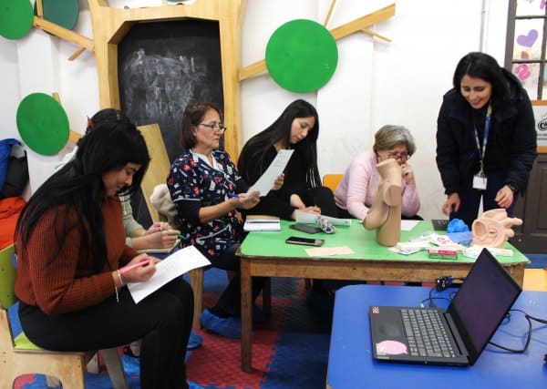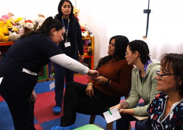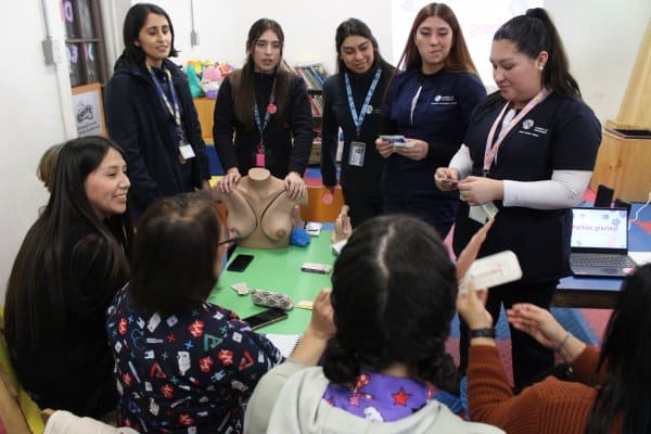“Se han hecho tres sesiones, la primera sesión fue de control de signos vitales, fracturas, RCP, enfatizando en la reanimación cardio pulmonar pediátrica y el manejo de la obstrucción de la vía aérea ( OVACE) y en estas dos últimas intervenciones decidimos ver una temática que finalmente pudiera ayudar a las cuidadoras directamente, que es la salud de la mujer y también una temática que fuera relevante para los niños, como lo es el autocuidado corporal”, detalla Galia Barahona, docente de Enfermería de la U. Central, encargada de desarrollar el proyecto.