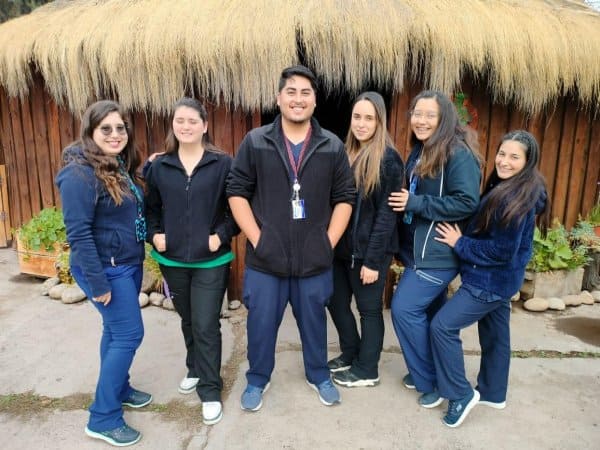 Los estudiantes de enfermería Estefanía Pozo, Felipe Benavides, Javiera Cerda y Scarleth Gangas, junto a Belén Zamora y Nicole Gómez internas de terapia ocupacional se reunieron en el centro ceremonial “Kiñe Pu Liwen” con 15 cuidadores de la comuna.