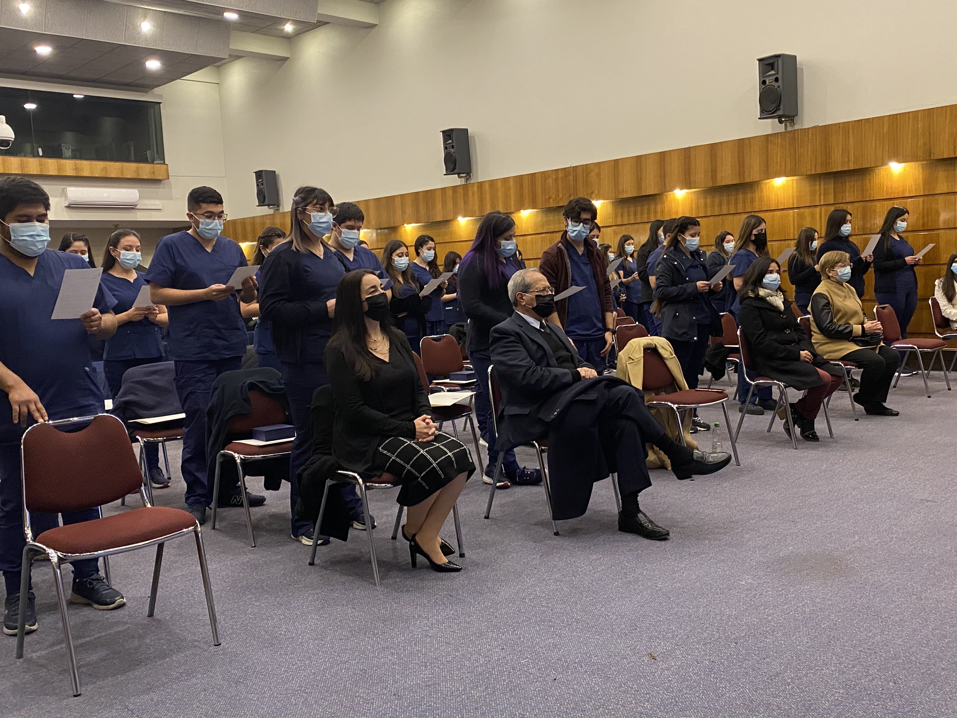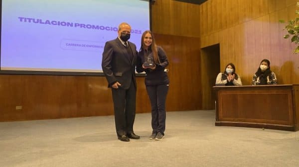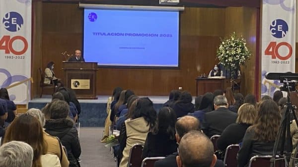 El pasado miércoles 27 de julio se llevó a cabo la ceremonia de titulación de egresados de la carrera de Enfermería promoción 2021. En la oportunidad se contó con la presencia del decano de la Facultad de Ciencias de la Salud Dr. Patricio Silva Rojas, la directora de la Escuela de Salud María Vanessa Hormazábal, directora de la carrera de Enfermería Ana Luis Fierro y la coordinadora docente de la carrera de Enfermería María de los Ángeles Carrasco, docentes de la carrera y los padres de los/as 120 egresados/as.