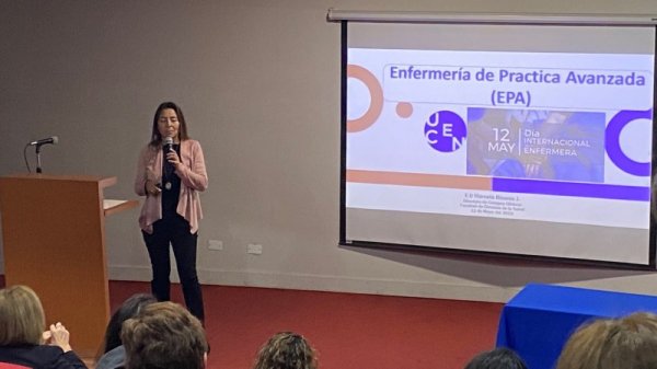 A continuación, la directora de la carrera de Enfermería Ana Luisa Fierro presentó "El estado del arte y desafíos de la carrera de Enfermería UCEN 2022", donde comentó acerca de los grandes hitos de la carrera, como los desafíos del retorno a la presencialidad de manera segura, el acompañamiento a los estudiantes en la incorporación a la vida universitaria, la creación de un comité asesor de la carrera y el comienzo del proceso de autoevalución 2023, donde se realizará la certificación de la carrera.