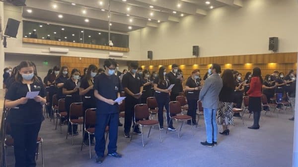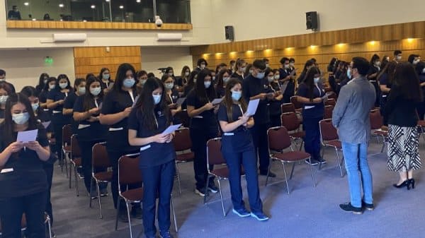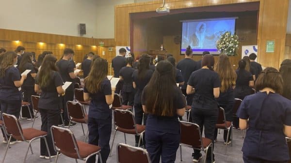 El pasado 4 de mayo, se realizó la tradicional ceremonia de investidura de la carrera de Enfermería generación 2022, ocasión donde las y los estudiantes por primera vez usan el uniforme de la profesión y marca de manera simbólica el ingreso a las prácticas en campo clínico, constituyendo un hito en su vida estudiantil.