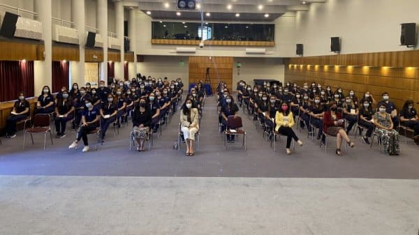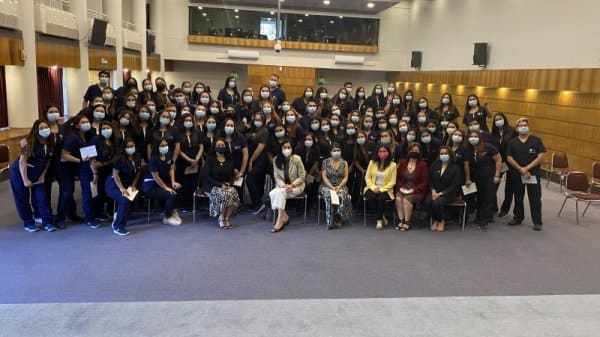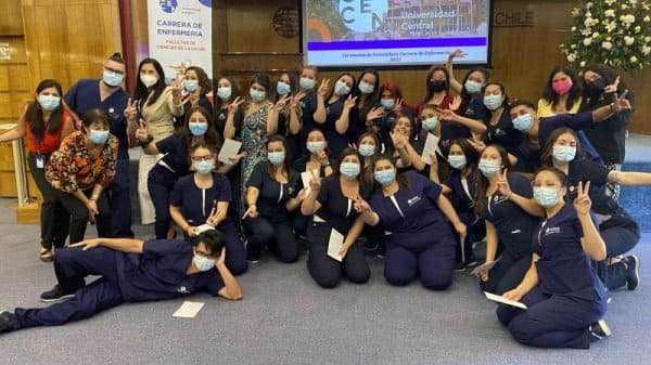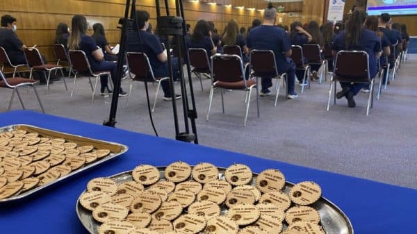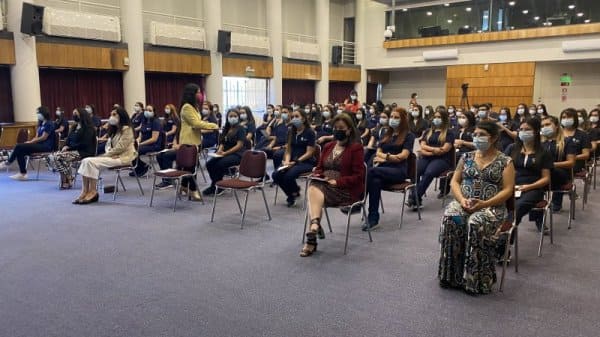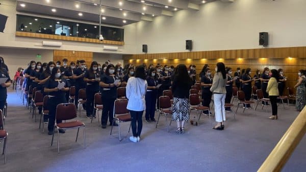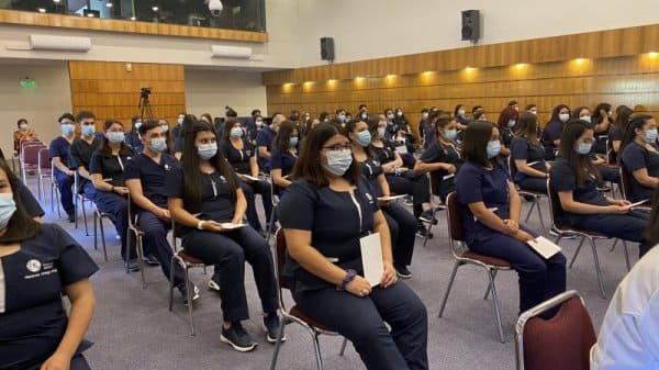 En el Aula Magna Fundadores del Centro de Extensión Hugo Gálvez Gajardo se realizó la ceremonia de investidura de la carrera de Enfermería, donde las y los estudiantes por primera vez usan su uniforme y marca de manera simbólica el ingreso a las prácticas de campo clínico, constituyendo un hito en su vida estudiantil.