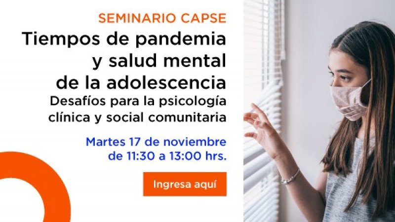 Te esperamos el martes 17 de noviembre a las 11:30 horas al Ciclo de Seminarios de CAPSE, Tiempos de pandemia y salud mental de la adolescencia. Desafíos para la psicología clínica y social comunitaria