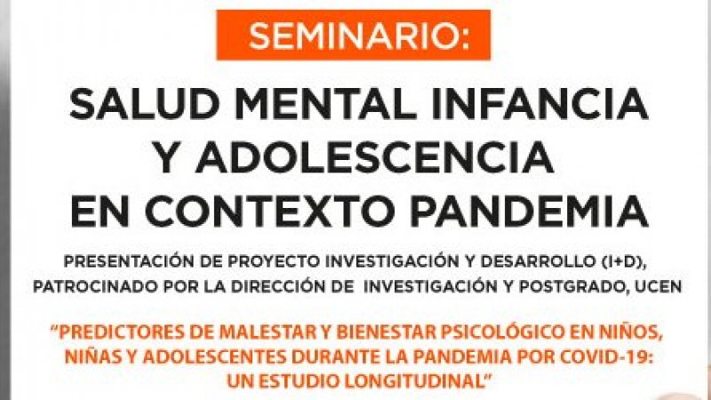 El seminario denominado “SALUD MENTAL INFANCIA Y ADOLESCENCIA EN CONTEXTO PANDEMIA”, contó con la participación del Doctor en Psicología Felipe García, Director del Doctorado en Salud Mental del Departamento de Psiquiatría y Salud Mental de la Universidad de Concepción, la Magíster en Gestión Educacional Romina Lizondo, Coordinadora Campos Clínicos Enfermería UCEN y docente de la carrera. La moderación estuvo a cargo de la estudiante de la carrera de Psicología María Belén Burgos.