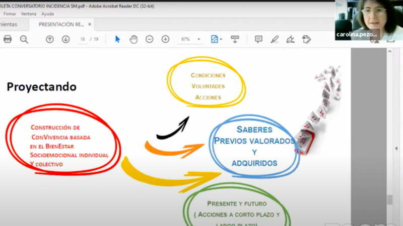 En la oportunidad la académica comentó y reflexionó acerca de la temática, donde aseguró que "no hay posibilidad de una convivenvia basada en el bienestar individual sin considerar el bienestar colectivo". Además explicó que se necesita un mayor enfoque en la salud y bienestar de los distintos actores de la comunidad educativa, para que puedan estar emocionalmente preparados.