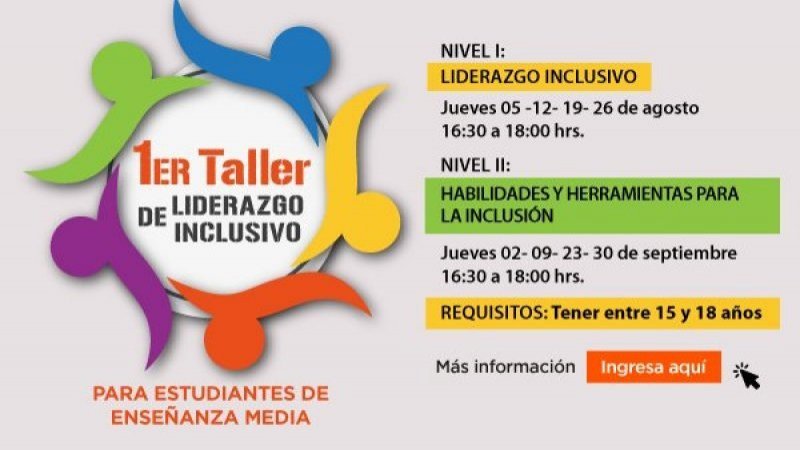 La actividad tiene por objetivo formar estudiantes de Enseñanza Media de 15 a 18 años que deseen desarrollar habilidades para ejercer liderazgo en sus respectivas comunidades educativas con un sello inclusivo. Te esperamos!