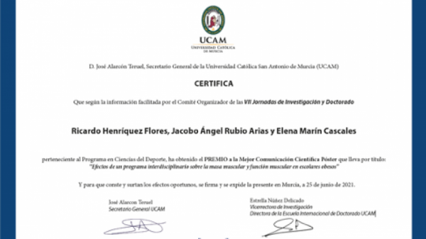Al respecto, el académico de la Escuela de Salud, comentó que “Las jornadas de investigación y doctorado de la UCAM ya son una tradición a nivel internacional, permitiéndonos conocer a investigadores de todas las áreas y sus trabajos doctorales. El reconocimiento que nos han otorgado es fruto al esfuerzo y la importancia que tiene en la sociedad actual el trabajo con la malnutrición por exceso infantil, y nos alienta a seguir esta línea”.