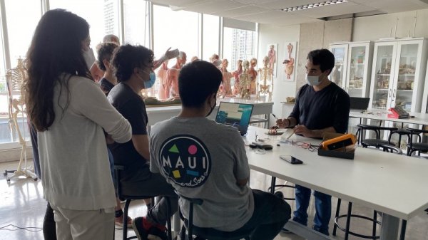 El día miércoles 3 de noviembre la carrera de kinesiología llevó a cabo el primer taller de Diseño y construcción de tecnologías de bajo costo para el estudio de movimiento humano. La actividad se realizó de manera presencial en los laboratorios de la Facultad de Ciencias de la Salud, donde asistieron 15 escolares, que disfrutaron de la ciencia, electrónica y sus aplicaciones biológicas.