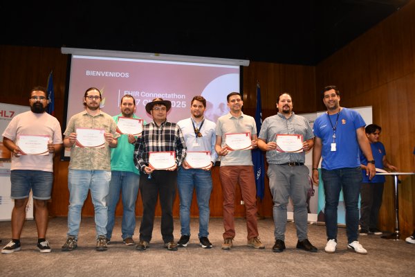 En la ceremonia de cierre se entregaron reconocimientos a los equipos que realizaron los ejercicios y a quienes trabajaron en la coordinación y organización de la Connectathon, entre ellos, estudiantes de la carrera de Tecnología Médica de la Facultad de Medicina y Ciencias de Salud, liderados por la académica Daniela Ovalle Vidangossy.