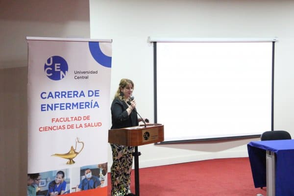 La Dra. Gisela Alarcón, decana de la Facultad y Ana María Álvarez, directora de la carrera de Enfermería, fueron las encargadas de abrir la actividad y entregar las palabras de bienvenida a quienes asistieron a la jornada.