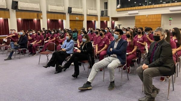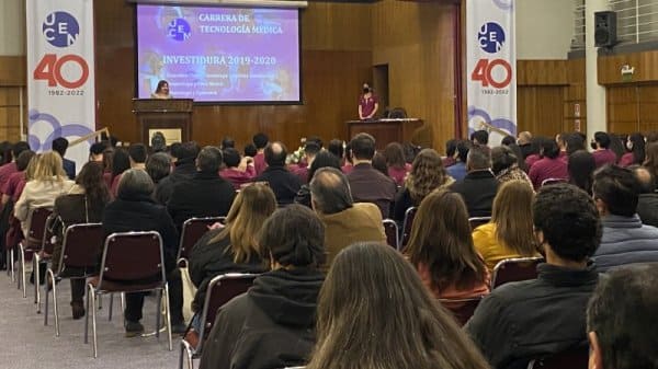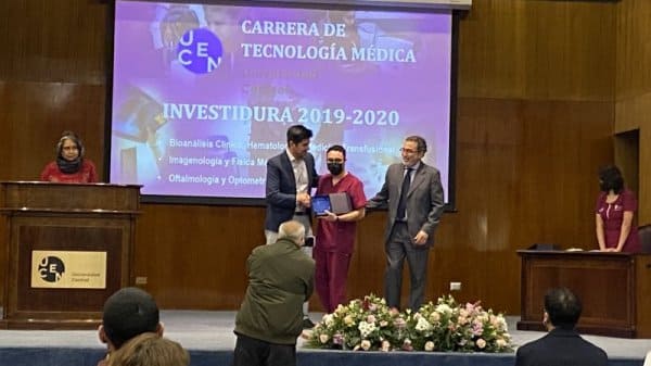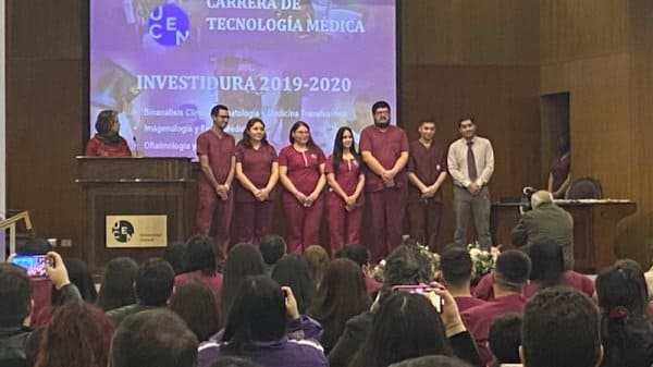 De manera presencial en el Aula Magna, se llevó a cabo la investidura año 2019 y 2020 de la carrera de Tecnología Médica con sus tres especialidades; Bioanálisis Clínico, Hematología y Medicina Transfusional, Imagenología y Física Médica y Oftalmología y Optometría. La Investidura es una ceremonia simbólica, donde las y los estudiantes concurren con vestimenta de color burdeo, que identifica a los y las Tecnólogos/as Médicos, reciben la piocha y credencial que los distingue como estudiantes en formación.