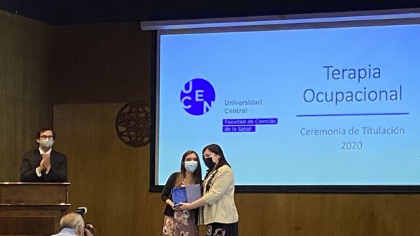 Más de 60 egresados y egresadas de la carrera de Terapia Ocupacional de la generación 2020 participaron este martes a la titulación que se realizó de manera presencial. La ceremonia que se transmitió vía streaming, contó con las palabras de bienvenida del decano de la Facultad de Ciencias de la Salud Dr. Patricio Silva Rojas.