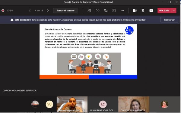 Durante el mes de marzo, Carreras Técnicas desarrolló diversos Comités de Asesores de Carreras; espacio que constituye una instancia asesora formal y sistemática, a través de la cual la Universidad Central establece estrecha relación con actores relevantes de la sociedad, promoviendo a partir de un espacio de diálogo y reflexión en torno a distintas áreas del desarrollo de la carrera, vínculo con el medio y la necesidad de formación de los(as) futuros profesionales.