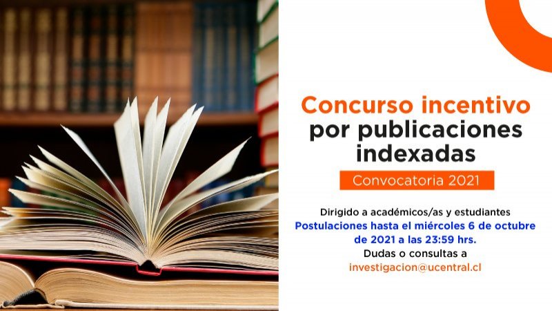 La Dirección de Investigación y Postgrado de la Vicerrectoría Académica, convoca a la comunidad académica de la UCEN a postular al concurso de incentivos por Publicaciones Indexadas, versión 2021.