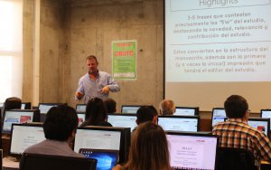 Ian Scott Kinney, CEO, International Journal Revisions, fue el relator invitado quien abordó, entre otros, los conceptos asociados a la publicación de artículos científicos (revistas indexadas, factor de impacto, visibilidad y rankings internacionales, principales editoriales, herramientas tecnológicas de apoyo, entre otros), la organización y formateo de artículos científicos, el análisis crítico requerido para mejorar artículos y cómo elaborar un plan de trabajo para lograr la publicación de artículos con impacto, además de la revisión de pares de las investigaciones realizadas.