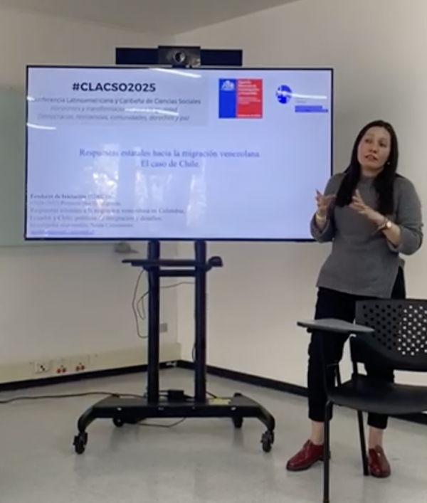 La agenda de la investigadora continuó los días 11 y 12 de junio en Bogotá, con su participación en el Congreso Internacional de CLACSO “X Conferencia Latinoamericana y Caribeña de Ciencias Sociales. Horizontes y transformaciones para la igualdad. Democracias, resistencias, comunidades, derechos y paz”. En el marco del grupo de trabajo “Migraciones Sur-Sur”, Colmenares impartió dos conferencias que abordaron los desafíos de la migración venezolana y las respuestas estatales en el contexto regional.
