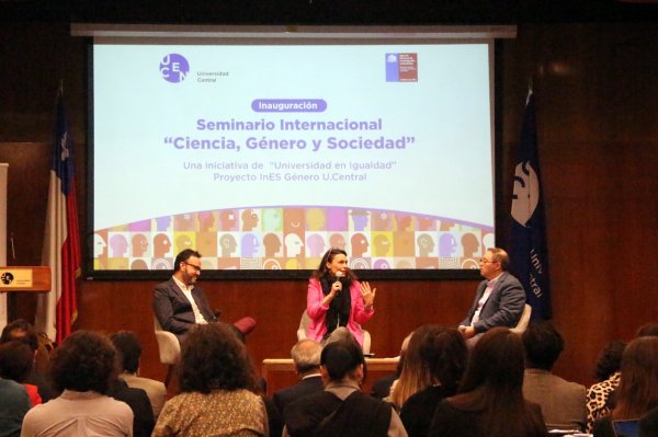 También en la ceremonia inaugural asistieron diferentes autoridades, tanto de la institución como externas. Todas precedidas por el presidente de la Honorable Junta Directiva de la Universidad Central, Don Patricio Silva R. y el señor Rector, Santiago González L. Además, el subsecretario de Educación Superior, Víctor Orellana C., entregó su apoyo y saludos a través de un video donde afirmó que “conversar y debatir sobre estas temáticas (ciencia, género y sociedad) es tremendamente relevante para el país”, destacando la labor del seminario.