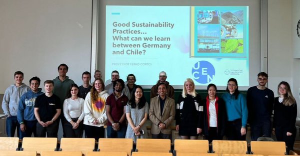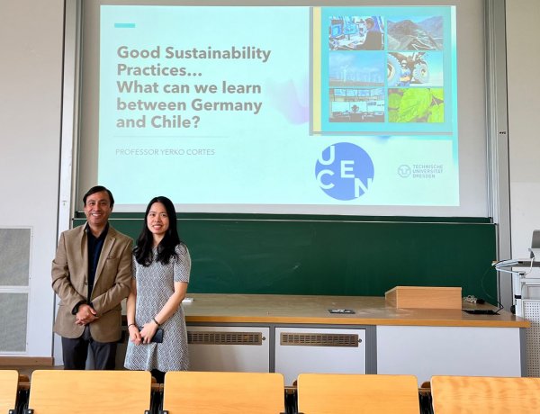 El investigador y académico de la carrera de Ingeniería Comercial, Yerko Cortés, visitó en noviembre la Facultad de Economía de la prestigiosa Universidad de Dresden en Alemania. Durante su estancia, tuvo la oportunidad de impartir dos cátedras sobre el tema de la sustentabilidad empresarial, con el propósito de conocer la experiencia alemana y establecer comparaciones con las prácticas que se están llevando a cabo en Chile.